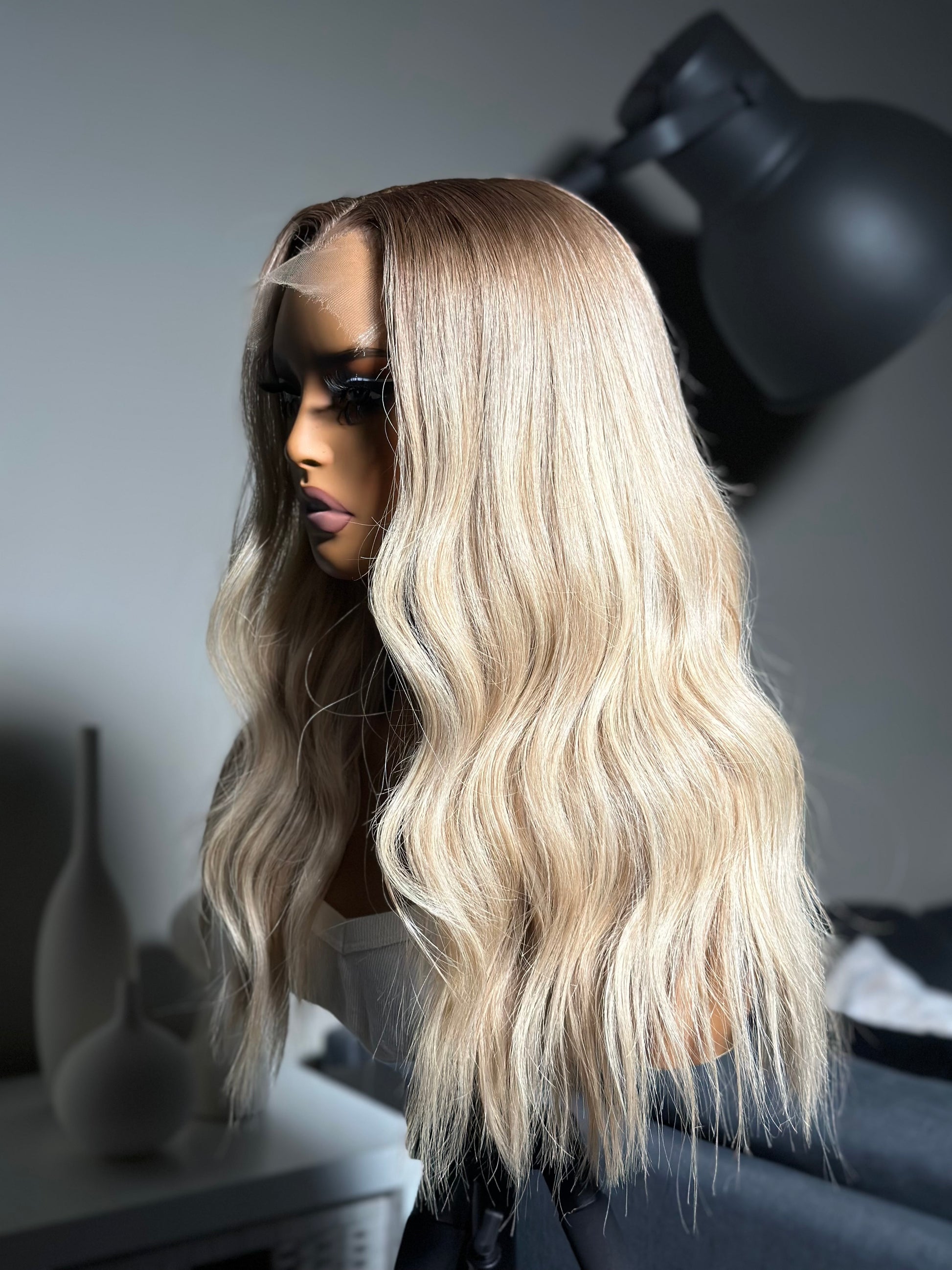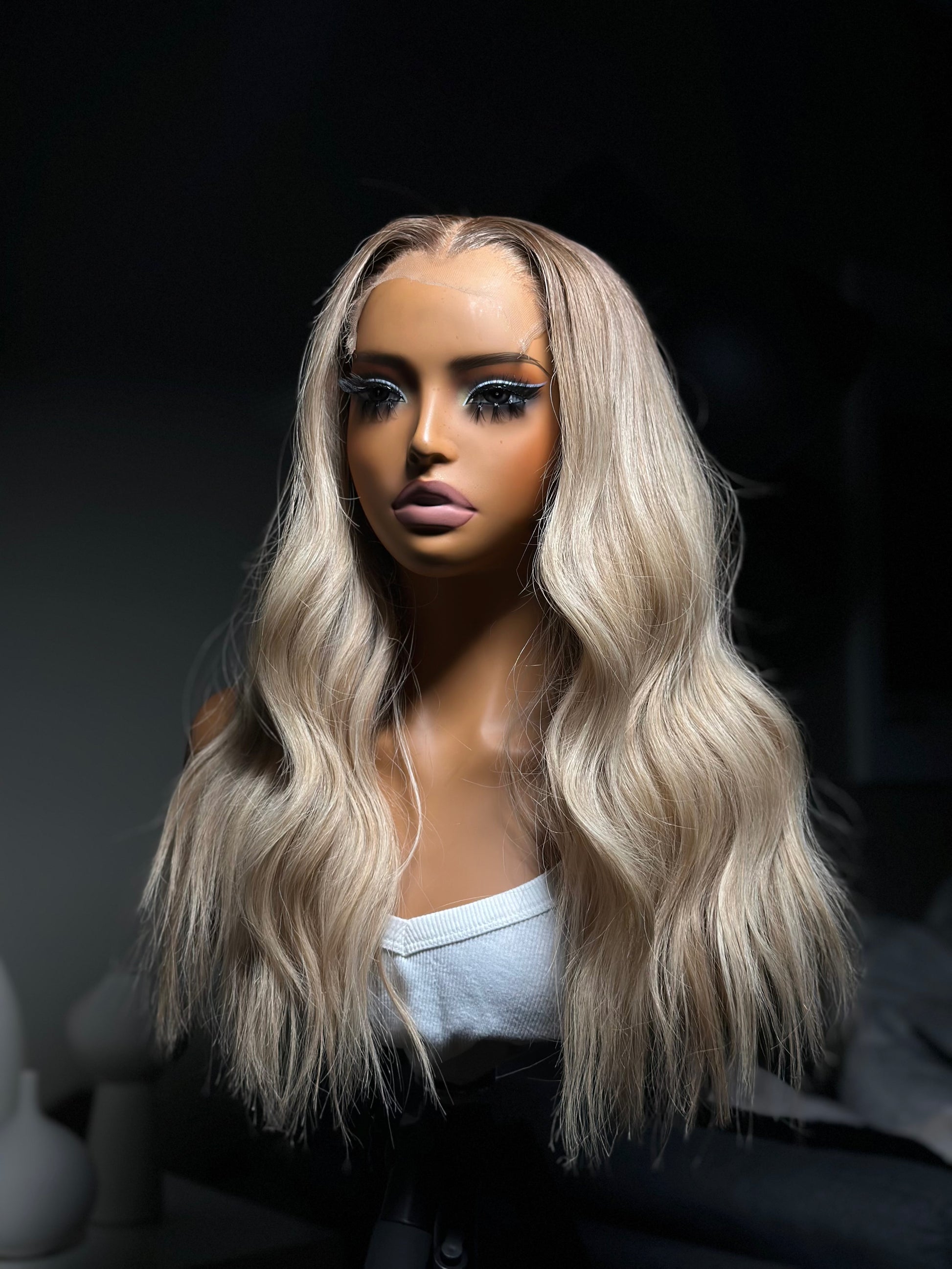 Color: Cendré-beige blonde with subtle lowlights and a medium brown root